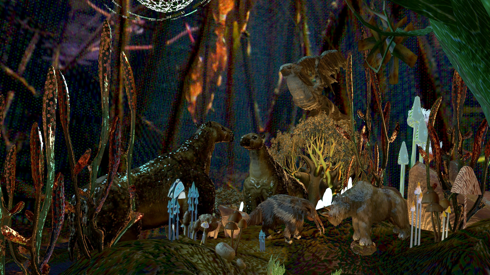 In my creation myth 3D animation titled All the World an Island, I drew from research on exoplanets, paleontology, and creation in Genesis to fabricate a world where many geological timelines exist together in the same virtualized ecosystem.